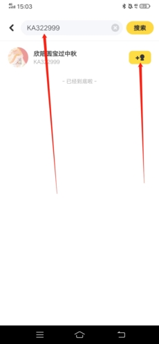 2、然后将想要添加好友ID或昵称输入进去,点击搜索,最后点击搜索出的用户右侧“+”按钮后,就能发送好友申请了。