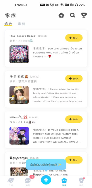 4、加入家族,成为他们志同道合的一员,共同参与活动。