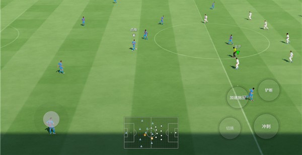 7、成功进入游戏后,玩家需要通过左边控制角色方向,右边控制铲断、切换、冲刺、加速施压等等技能,开启自己的比赛之旅。