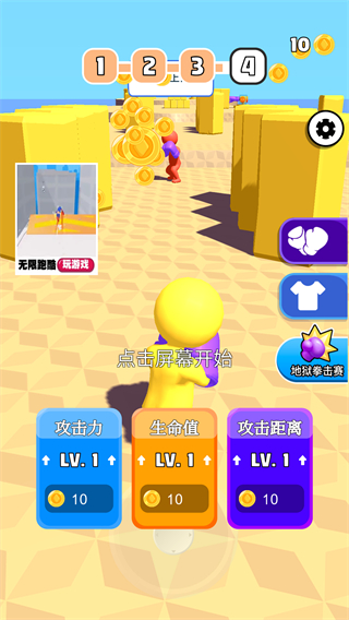 1、游戏操作方法非常的简单,玩家只需要不断的挥拳击败敌人就可以了。