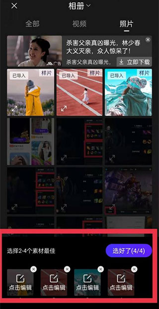 3、选择一个自己喜欢的素材选好图片和视频点击选好了。