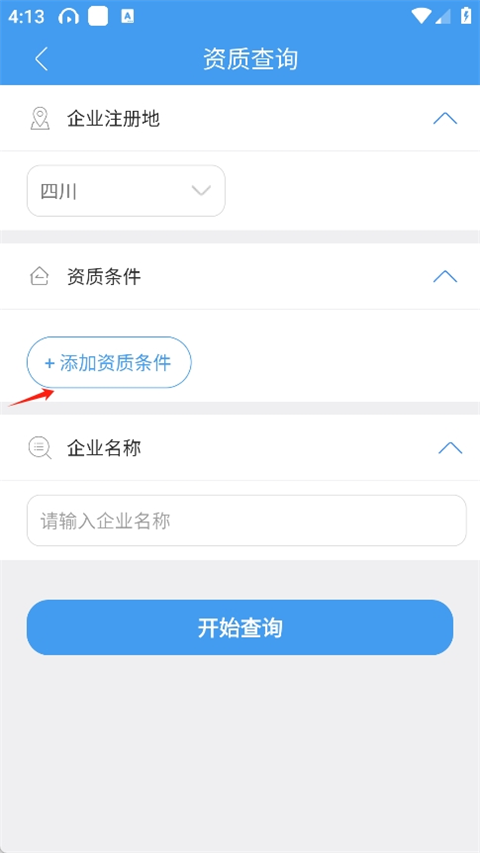 3、近期之后,大家根据自身情况,选择需要查询的企业注册地、资质条件、企业名称等。