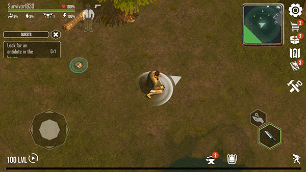 1、首先进入生或死生存游戏,然后移动摇杆控制人物的移动方向。