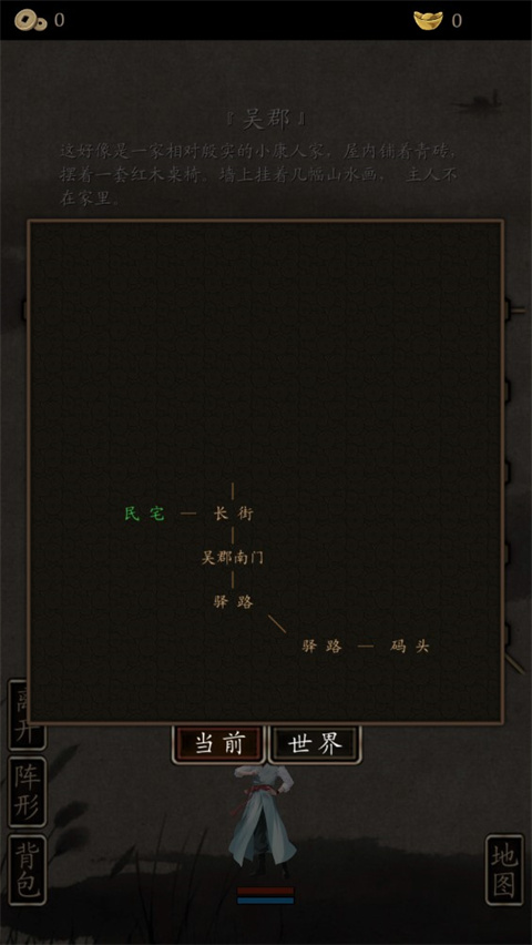 3、接着可以进入地图,点击不同的地方会有解析,比如驿路,你走在一条尘土飞扬的大驿道上,不时的有几匹快马从身边飞驰而过,马上的骑手的背上都佩带着刀枪剑戟,看来都是些习武的人士,道路两旁是树林;