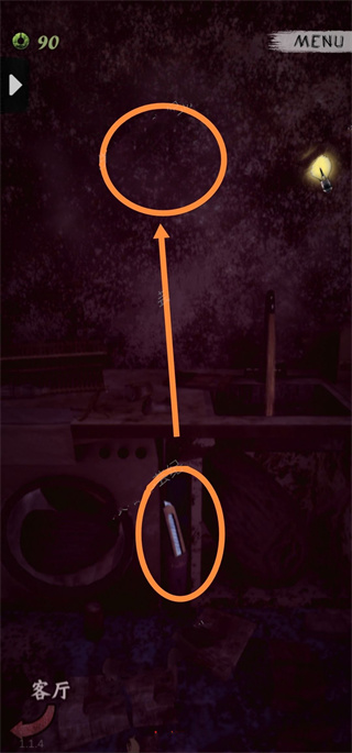 9、这里的第五章与上一次轮回的第五章相似,我们在进入谢恩乔家中后,可以在客厅收集到布、水杯、插头。唯一不一样的地方在于用湿布擦落地镜时,开启“鬼眼”才能看到密码。对盒子输入密码拿到钥匙,用插头点亮睡房台灯。