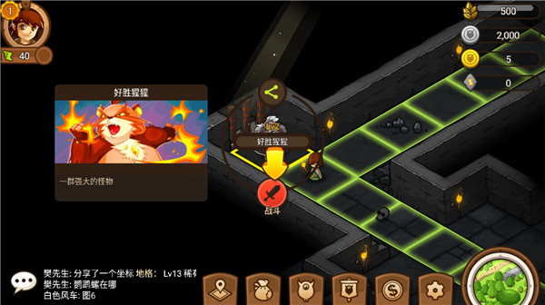 5、在冒险的途中遇到各种怪物,点击战斗进行对战;