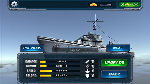7、每艘战舰都可以进行升级,包括火炮威力,自动巡航导弹,舰载机,以及防护装置;
