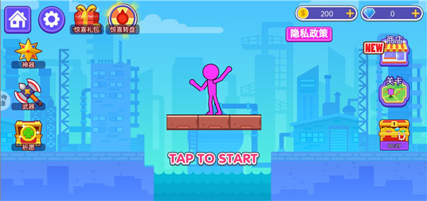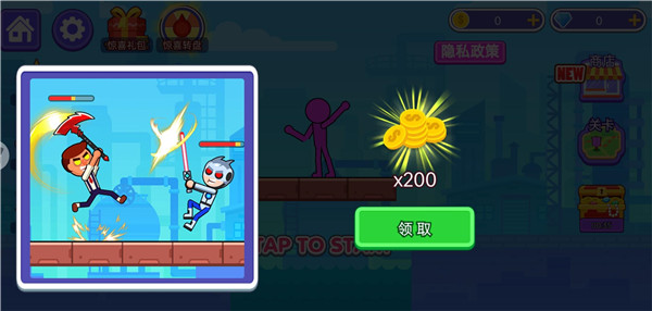 大战三回合官方版是由厦门简创网络科技有限公司开发的一款极具打斗体验的格斗动作手游,在游戏中玩家将控制角色和对手进行激烈的对战,里面有各种武器可以选择,还可以选择自己喜欢的角色,通过操作技巧去战胜对手,非常的有趣。游戏的角色分为小丑、忍者、大海盗任由玩家选择,更有多款神兵利器像是激光剑、大镰刀、神弓等等,还有多种关卡,多个不同的挑战场景,考验玩家操作技巧的时候到了,去尽可能获取更多的金币,可以用来购买更强大的武器,从而可以让您更快的击败对手。另一方面,大战三回合官方版拥有精致的游戏画面,操作简单,左手控制方向,右手进行攻击,轻松上手,去击败一路上的强敌,慢慢让自己变得更加强大,您会体验的格斗游戏的快乐!