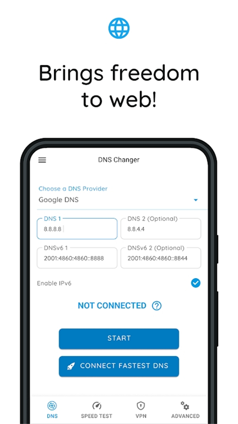 DNS修改手机版是一款由网友分享的手机DNS修改软件。这款软件可以帮助用户不需要root就可以修改自己手机的DNS域名,操作起来也很简单,轻松转换自己的手机dns,而且软件的体积十分小巧。软件还附带了多个不同的主题,用户可以自由的切换更符合自己要求的界面,支持用户使用3G、4G和wifi。有需要的用户可以来这里下载它试试吧,让你自由修改,能够科学上网,是不是非常不错呢,需要的朋友赶快来本站下载吧!
