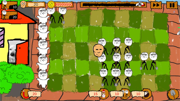卧槽大战尼玛官方正版是一款以暴漫为题材的策略塔防手游,游戏的玩法和植物大战僵尸有点像,玩家能够轻松上手。游戏中地图非常丰富,武器多样,可玩性很高。该款游戏采用浮夸的暴漫风格设计,游戏中的人物与角色均为大家熟悉的暴漫表情,给玩家一种熟悉又亲切的感觉,这里的角色全都是表情包的形象出现,看起来超级魔性,玩家可以选择其中的一方来代表自己,带领你的表情包军团与敌方对战,操作简单很快就能上手,主要还是画面的打造让人爆笑不已。