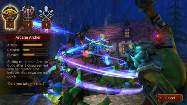英雄永不灭官方版是一款非常热血的3D塔防类手游,游戏模式和冰封王座之类的单机版魔兽有些相似,游戏中玩家可以自由控制英雄移动攻击,消灭以百计的怪物。当然如果说是靠炮塔,不如说你的英雄操作更为重要!所以说要英雄们在你的操作之下充满活力,并且用他们赢得一场场塔防的胜利!《英雄永不灭》游戏采用的是3D画面,和传统的塔防游戏完全不同,这款游戏不仅仅是简单两种游戏类型的混合,而是融合。游戏的色调偏暗,讲述一个神秘的人类国度遭受兽人袭击的故事,作为主角,玩家需要为人类的未来战斗,战斗的胜负往往并非仅仅取决于角色本身,需要场景中炮塔的布置和角色战斗的集合。这个玩法非常有新意,关键是开发者在可玩性上优化的比较到位。而且游戏中也有专门的塔防或是动作格斗闯关关卡,足可见开发者对于两种类型的把握程度。
