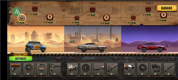 3、赚取金币并定制您的车辆,各种各样的僵尸拦截你。
