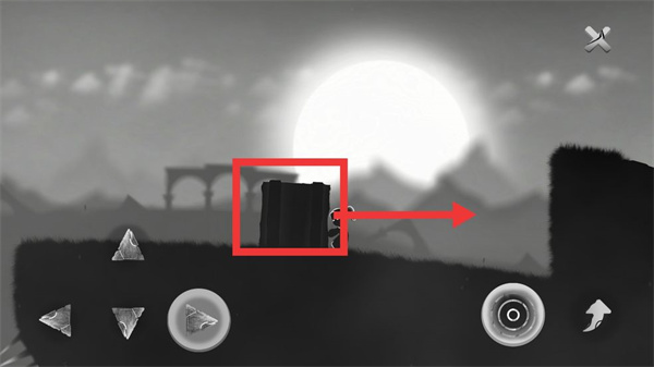 ①、将石块推至右边小坡,踩在石块上翻越小坡。注意躲避恶魔。