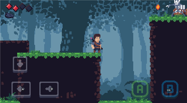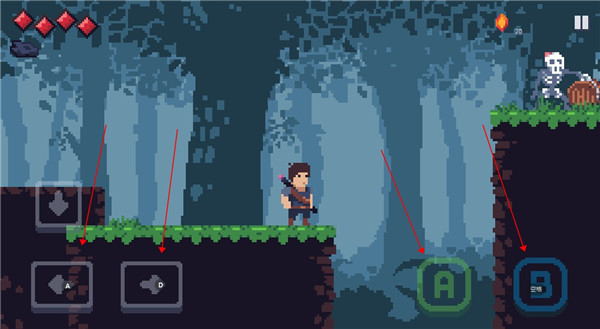 3、左边的两个键是左右移动,右边的A键是攻击,B键是跳跃