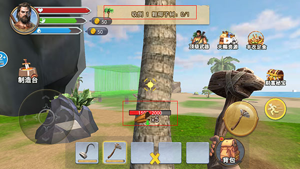 3、荒岛狩猎极其危险,请制造对抗野兽及怪物的武器,以此确保在海上生存下去。