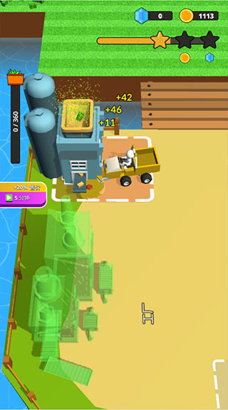 2、收集草并售卖,出售的金币用来升级你的装备,提高效率赚更多的钱。
