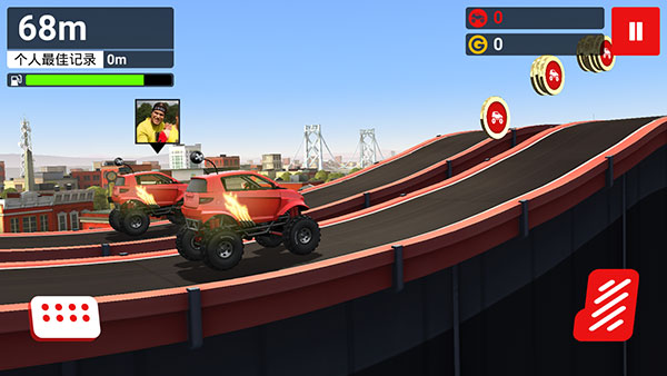 2、行驶的过程中我们还可以收集到许多的金币,对局结束后可以升级或解锁新车。