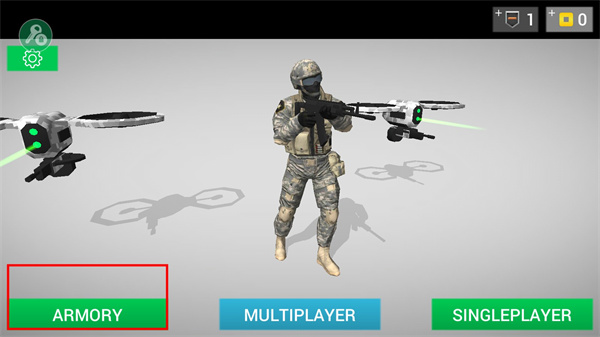 1、首先进入游戏,点击【ARMORY】可以购买武器装备等物品,这些在战斗中都可以很好的帮助你。