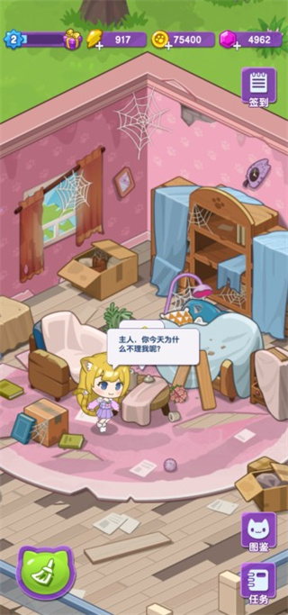 游戏中,你需要通过合成工具来修理家具,并且不断收集物品以应对未来的挑战。祖父母留下的别墅需要你好好打理,不然这些魔法猫女就没地方住了。每个猫女都有自己的秘密房间,探索它们的世界也挺有趣的。