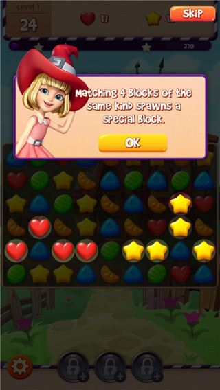 甜心女巫官方版是一款十分有趣好玩的消除休闲类游戏,画面设计精美简约,玩法简单易学,操作便捷流畅上手容易,游戏中玩家需要带领着Q萌的甜心女巫在缤纷炫彩的魔法糖果世界中寻找最美味的糖果,通过用手点击屏幕滑动糖果进行消除闯关,根据每一个关卡的不同图形把相同的糖果连在一起,在有限的时间内达到指定要求完成挑战即可成功,并且关卡种类丰富,场景复杂多变,丰富的匹配性更加具有策略,每一关都是精心设计,不一样的糖果块等着你来消除,让你感受到不同模式丰富多彩的乐趣,还能解锁超多道具,帮助你轻松通关,带给你爱不释手的奇妙体验,更有超多游戏玩法等你来体验,喜欢的朋赶紧来下载试玩吧!
