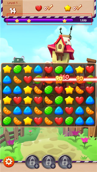 2、当你顺利的到达关卡的要求,就可以顺利的消除相应的糖果块,不断的对糖果块消除获得胜利。