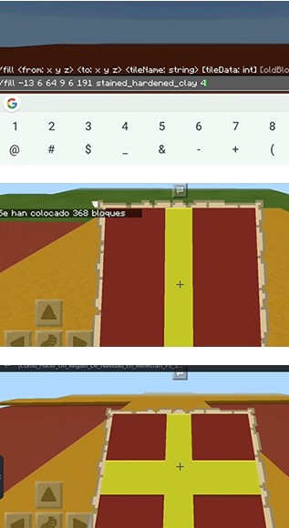 5、同理,用黄色黏土确定好坐标后再用fill指令填满,完成十字型的操作,再重新生成地图即可获得礼包图案的地图了。