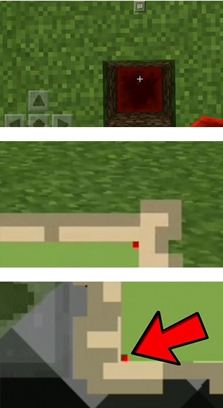 2、分别在地图的2个对角位置挖2格深,放置一个红石块定位。