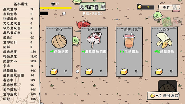 2、打开宝箱,可以选择初始技能,例如,可以加暴击的汉堡包。