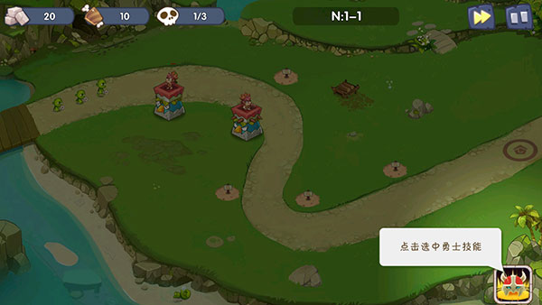 1、进入关卡后,我们解锁了第一个防御塔,长矛哨塔。