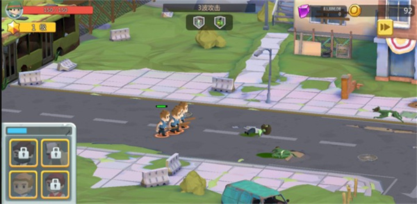3、士兵会开始攻击僵尸,大家如果嫌速度太慢可以点击右上角的加速;