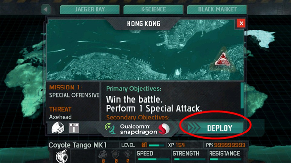 1、在本站下载环太平洋手游,点击屏幕中指定的红色之处;
