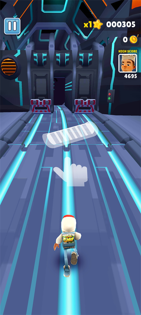 4、当遇到前方和左边都有地铁的时候需控制人物向左边滑动,哪里没有障碍就往哪边走;