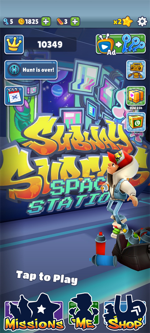 1、首先进入地铁跑酷空间站版本,点击屏幕开始游戏;