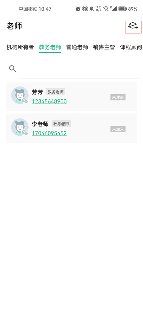 一键通讯录添加学员、老师和教务,老师或教务可选择已加入的机构;