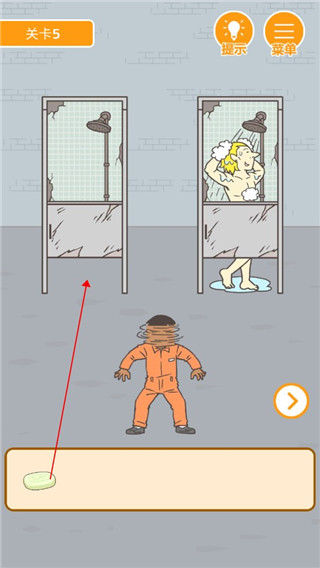 5、第五关,切换场景,将水阀关掉,拿拖把将水关掉,拿到肥皂,将肥皂拖动到浴室即可。