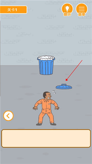 1、第一关,点击下方的箭头切换场景,点击盖子,拿到后将它拖动都垃圾桶上即可。