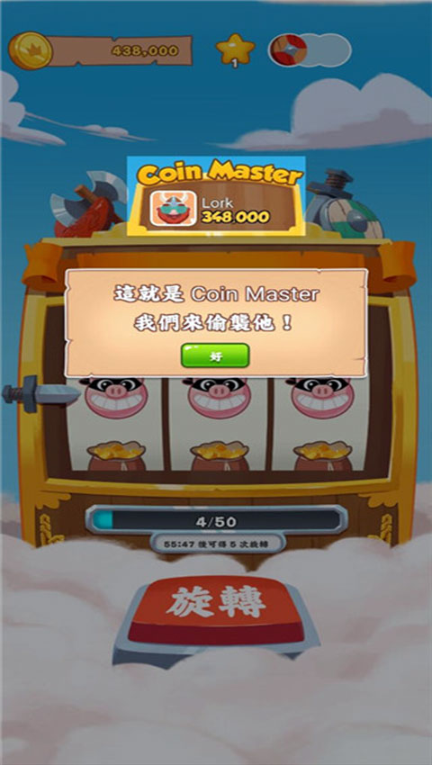 金币大师国际服是一款的休闲游戏,英文名Coin Master。游戏主要围绕老虎机模式为玩法核心,搭配经营和建造两大元素,玩家可以在这里免费旋转轮盘抽奖,抽取不同的道具将会触发不同的剧情和行动,例如转到“三把锤子”可以攻击随机对手的村庄,转到“三只猪”则有机会攻击一位“金币大师”,还可以利用这些金币就足以搭建一座新的建筑物…