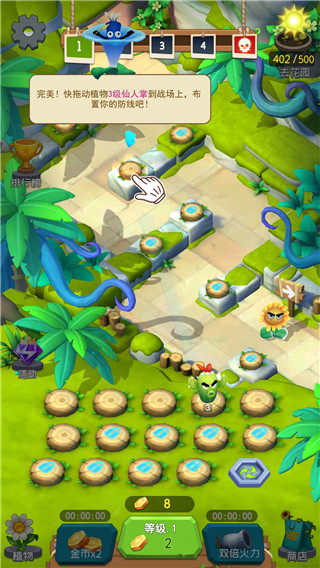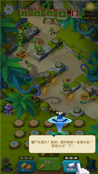 每次通关后不仅有奖励,还能看到僵尸进化,这种对抗感让人欲罢不能。游戏还有多种玩法模式和挑战任务,让塔防对决更有趣。尤其是双倍火力功能,战斗力瞬间爆表,钻石也能领,简直不要太划算!
