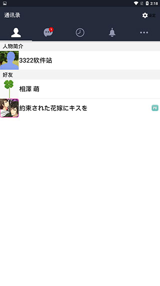 2、然后我们就可以进入到通讯录界面了,这里显示的是你的好友列表。