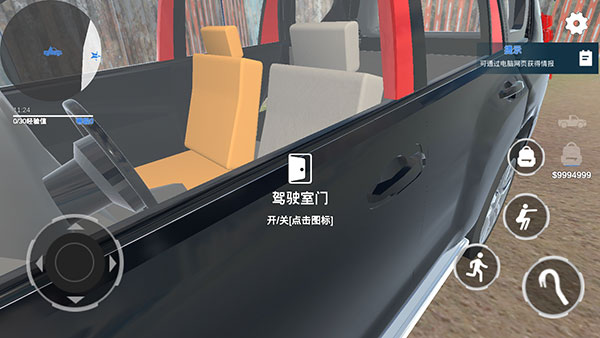 11、在室外找到汽车之后,点击驾驶室门图标可实现开/关效果。