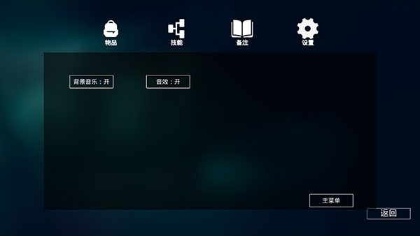 10、然后是设置页,这里可以对游戏的背景音乐和音效做出设定,或者也可以在这里返回主菜单。