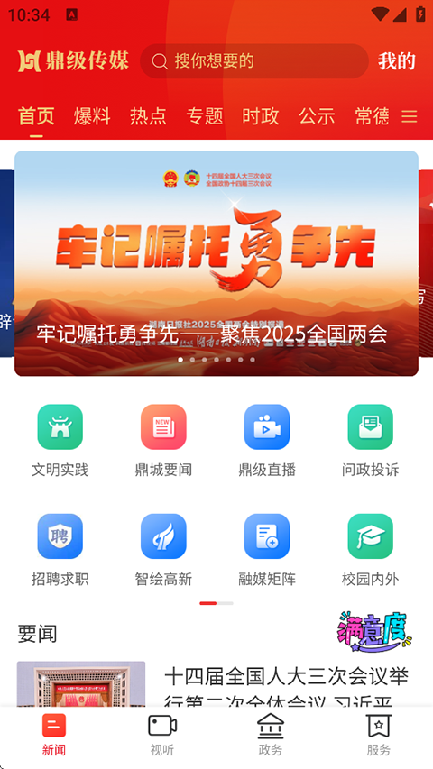 鼎级传媒app是一款湖南鼎城当地新闻资讯政务服务软件,以遵循为人民服务,帮助人民排忧解难为宗旨,为用户提供了新闻阅读、民生资讯以及政务服务三大内容板块。其中政务读物栏目,又分为政务新闻。政策查询、政务办事、投诉爆料等多个子栏目。