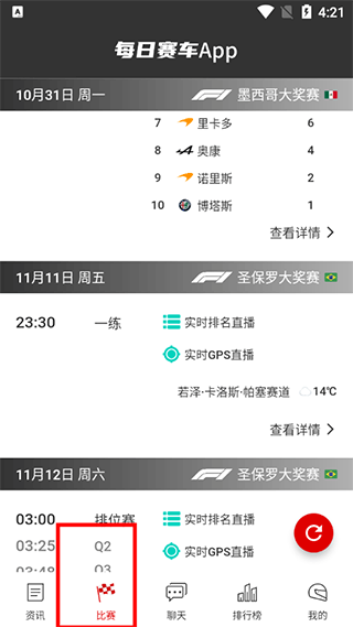 6、【比赛赛程】支持F1所有比赛时间,播出平台和解说查询。供您查询挑选最合适的平台观看精彩直播。