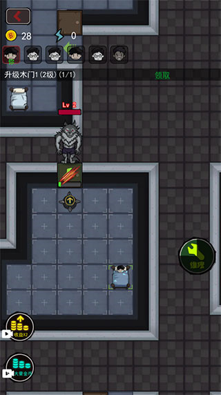 6、躺平后,把门进行升级,建立基础设施,对猎梦者进行防御,猎梦者一旦破门而入,后果不堪设想