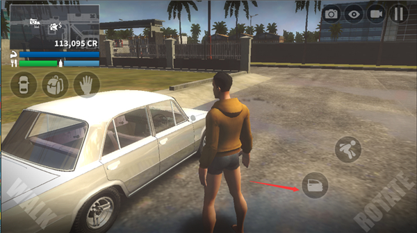 7、进入游戏我们需要控制人物去汽车旁边,点击开门;