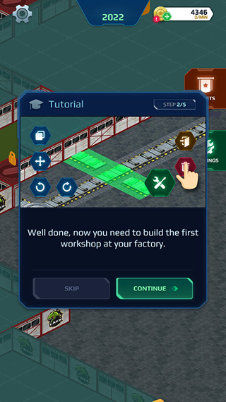 2、UI设计得简约大方,整体界面没有什么乱七八糟的按钮,每一个按钮的作用都一目了然,人物的设计非常卡通化,工厂的设计有点科幻风格,看着萌萌哒的老爷爷(也许是老工程师)提示我这样那样,那感觉真是卡哇伊呢。