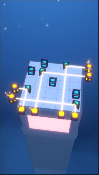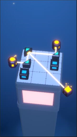 5、第五关需要使用一个三角棱镜在对角做一个折射,然后在使用另外两个棱镜分别将光线折射到对应的位置即可。