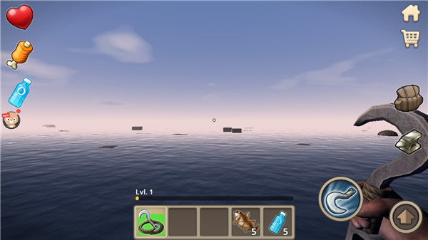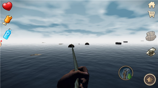 制备必需品,以此确保在海上生存下去。在小木筏上就可收集靠近的材料,而对于远处的材料可以选择抛出钩子钩过来,或是跳入海中游过去拾取