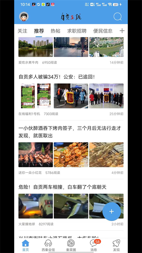 自贡在线app官方版是一款相当有人气的门户社区。功能上软件就集合了社交、互动、资讯、服务在内的多方面功能服务。就拿其中的互动来说吧,用户们可以在这里进行着讨论本地热点新闻、爆料最新八卦、分享身边美食、晒出生活美图、参与线上线下聚会等都是可以的哦,当然要想体验到以上服务的话,前提是用户您的使用这款软件,要不然无论社区多么的热闹,你都只是在看的而不是参与其中呢。界面上,自贡在线手机版更主流的论坛贴吧软件差不太多,基本上都是无缝切换的。而对以上软件所提供的内容感兴趣的话,欢迎大家下载进行体验哦。