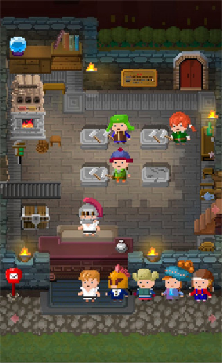 锻冶屋英雄谭经典版是一款模拟经营放置类游戏,故事背景发生在不知道哪一个时期的大锻冶时代,所有人都在开铁匠铺,冶炼出装备去赚钱,而你就是这个时代应运而生的未来铁匠之王,所有来买过你武器的顾客都会成为听你调遣的英雄。在游戏中玩家将扮演的就是一位武器店的老板,在这期间你需要研制武器、招募工人、安排挖矿、探索、锻造等任务,并向英雄出售武器,以帮助英雄打败一波又一波的强大魔物。